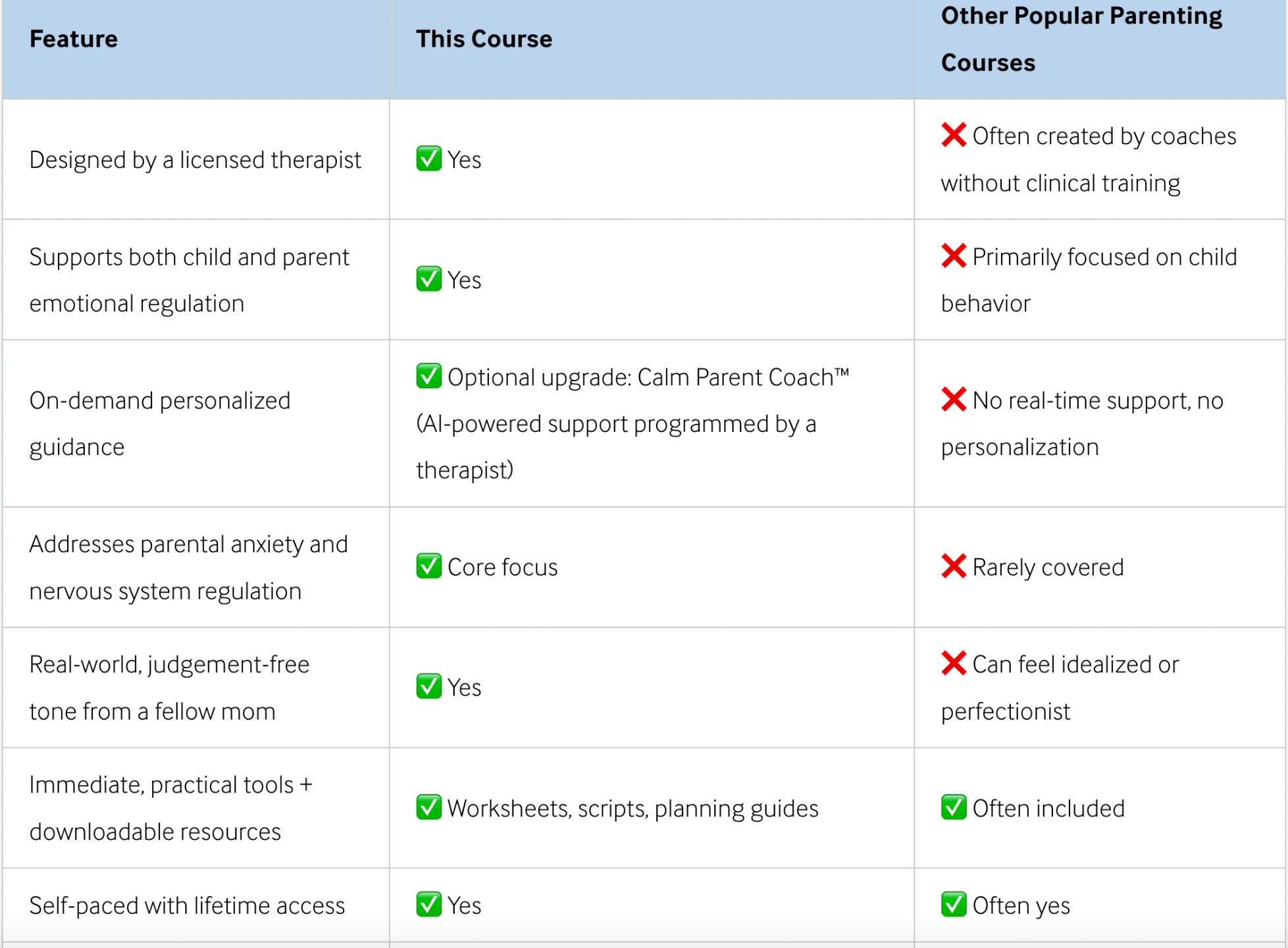 And unlike other programs that leave you to figure it out on your own, this course is supported by Calm Parent Coach™ — your personalized, 24/7 GPT-powered parenting companion that helps you apply the tools to your real-life moments anytime. This isn’t about being a perfect parent. It’s about becoming a calmer one, even when emotions run high.